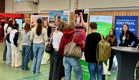 In der Turnhalle des Ulrichsgymnasiums fand am 11. September 2025 zum zweiten Mal die „UGN-Betriebemesse“ statt. Am Morgen wurden die 24 Aussteller von der Schulleiterin Frau Terstegen begrüßt, die die Bedeutung der Messe sowohl für die Betriebe als auch für die Berufsorientierung der einzelnen Schüler/innen herausstellte. Im Anschluss informierten sich die Jahrgänge 9, 11 und 13 sowohl über ein breites Spektrum an Praktikums- und Ausbildungsmöglichkeiten als auch über duale Studiengänge und die Studienangebote der Hochschule Emden/Leer.
