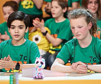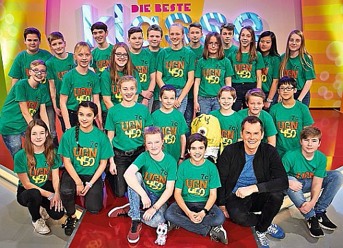 Mit großer Spannung erwarten sie die Klasse aus Hamburg, gegen die sie antreten müssen. „Ich würde sagen, dass ich besonders gut in Naturwissenschaften bin. Die anderen sind in ganz vielen anderen Bereichen stark, sodass wir im Grunde alles können“, sagt Luca und zeigt sich zuversichtlich. Für zusätzliche Motivation sorgt ein Plüscheinhorn – das Maskottchen der Klasse. Mit ihrem plattdeutschen Schlachtruf „Geiht nich, gifft nich!“ geht es an das Ratepult und mit viel Glück eine Runde weiter in das Wochenfinale. In zwei Wettbewerbsrunden stellen sich die Klassen spannenden und unterhaltsamen Quizfragen aus Wissensgebieten wie Natur und Umwelt, Sport, Musik, Erdkunde oder Essen und Trinken. Hier ist Teamgeist gefragt, denn die Quiz-Show setzt auf das gesamte Klassenteam: Je mehr Schüler eine Frage richtig beantworten können, desto mehr Punkte werden erspielt und umso größer ist die Chance auf den Sieg. Allgemeinwissen allein reicht nicht aus. Die Rateteams müssen schnell kombinieren, taktisch spielen und ihr Geschick unter Beweis stellen. Ausgestrahlt wird Deutschlands größtes Schülerquiz mit Moderator Malte Arkona seit dem 8. Mai montags bis donnerstags (jeweilsum19.25 Uhr) im KiKA. Die Wochenfinalshows sind jeweils freitags um 19.30 Uhr zusehen. Im Superfinale, das am Sonnabend, 3. Juni, um 10 Uhr im Ersten bei Check Eins zu sehen ist, treten die vier besten Teams der Staffel gegeneinander an. Die Klasse, die sich gegen die Konkurrenz durchsetzen kann, gewinnt den Titel „Die beste Klasse Deutschlands“ und eine Klassenfahrt nach Madrid. Unterstützt werden die Superfinalisten von vielen Stars und prominenten Gästen wie Ralph Caspers, Bürger Lars Dietrich und Jeannine Michaelsen, die sich mit Quizfragen aus Madrid meldet. Außerdem ist Mark Forster als Musik-Act im Superfinale dabei.