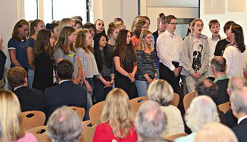 Die gute Zusammenarbeit hoben Marten Lensch für den evangelisch-lutherischen Kirchenkreis und Ida Bienhoff-Topp als Vorsitzende des Schulelternrates hervor. Sie beschrieben das Miteinander als partnerschaftlich und vertrauensvoll. Das letzte Wort hatten die Schüler. Die Schülersprecher Aneele Fischer und Lorenz Vogel betonten, Schule sei mehr als Vokabeln und Formeln, Schule sei ein bisschen auch Familie. „Wir sind stolz, Teil dieser Familie zu sein.“ Beide untermauerten das singend, unterstützt von Schulband und Chor, mit einem Lied aus dem neuen UGN-Musical.