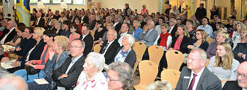 „450 Jahre sind eine lange Zeit“, sagte Grätz. „Nach heutiger Lebenserwartung knapp die sechsfache Durchschnittslänge eines Lebens in Deutschland.“ Zwischen 15 bis 22 neue Generationen seien in diesem Zeitraum geboren worden. Die Anfänge waren klein: „1567 fing alles mit einem Schulleiter und ein bis zwei Lehrer an.“ Die Zahl der Schüler war ebenfalls gering und lag wahrscheinlich zwischen zehn und 25. Im kommenden Jahr werden etwa 1400 Schülerinnen und Schüler das Gymnasium in Norden besuchen, unterrichtet von 102 Lehrkräften. Oberstufenschüler können aus fünf Profilen ihre Fächer auswählen. Dieses Angebot und die dahinterstehende Qualität hätten dazu geführt, so Grätz weiter, dass im Prüfungsjahr 2019 voraussichtlich 180 Jugendliche in Norden ihr Abitur ablegen. „Das sind schon recht beeindruckende Zahlen“, fand der Schulleiter. Doch was bedeuten 450 Jahre Schulgeschichte heute?, fragte er. Grätz leitete daraus die Verpflichtung ab, junge Menschen so zu bilden, dass sie zu einem Studium befähigt sind, die überdauerten Werte zu erhalten und für eine moderne Bildung zu sorgen. „Das ist anspruchsvoll und fordert Niveau und Qualität, auch wenn heute so mancher Politiker lieber eine hohe Quote in den Vordergrund stellt.“