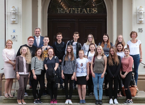 Nach einer strapaziösen zweitätigen Busfahrt wurden die jungen Gäste von ihren gleichaltrigen Schulkameraden am Sonntag begrüßt. Zum umfangreichen Wochenprogramm zählte unter anderem auch ein Besuch im Norder Rathaus: Bürgermeister Heiko Schmelzle (CDU) hatte zu Tee und Krintstuut eingeladen und nahm sich eine Stunde lang Zeit, um mit den Schülern und deren Begleiterinnen, Tatjana Matwejewa und Ludmilla Cherkas, zu plaudern. Die Fachlehrerin Martina Jürgens übernahm derweil das Dolmetschen.