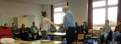 Über die Theorie und das Training von Kommunikationstheorie und -strategien wurde übergeleitet in konkrete Situationen aus dem Umfeld Bewerbung, Einstellungstest, Gruppengespräch und Assessement-Center sowie Mitarbeitergespräch, sogar aus der Chefposition heraus. Hier konnte in Rollenspielen an konkreten Beispielen analysiert und geübt werden, was sowohl auf künftige Hürden der Einstellungspraxis, aber auch darüber hinaus auf die Arbeitswelt insgesamt vorbereitet. Dabei kam die berufliche Praxis der Ausbilder, die teils selber Managementerfahrung aus größeren Unternehmen besitzen, den Schülern sehr zu gute, da insgesamt der Durchgang stark an die Arbeitswelt, aber auch an der Lebenswirklichkeit der Schüler angelehnt war. Immerhin stehen für diesen Jahrgang ab dem Sommer die ersten Bewerbungen an, sofern nicht der Weg ins Studium eingeschlagen wird.