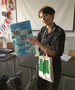Nach einem Vortrag zum Algerienkrieg begaben sich die Jugendlichen an die Runden Tische. Hier berichteten Zeitzeugen und Spezialisten über ihre Leben: Einer berichete, wie es war, sich als jüdisches Kind, während der Nazizeit in Frankreich verstecken zu müssen. Ein anderer berichtete über die Gräueltaten im Algerienkrieg und über die Mission SOS Méditerranée. Die anschließenden Schülerpräsentationen streiften viele Bereiche. Es gab Vorträge über die „Wolfskinder“, die nach dem 2. Weltkrieg ihre Eltern verloren hatten und um ihr Überleben kämpfen mussten. Die Prager Schulen hatten einen Film zum Prager Frühling gedreht. Aus Paris hatte sich eine Delegation mit dem spanischen Bürgerkrieg beschäftigt. Die Norder Jugendlichen hatten sich Gedanken dazu gemacht, was in Kriegszeiten hilft, nicht nur zu überleben, sondern auch zu leben. Dabei präsentierten sie sowohl eine deutsche als auch eine französische Version. Die Norder Schülerin Greta Folkerts stellte darüber hinaus das Leben der Wormser Jüdin Tanya Josefowitz vor.