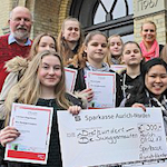 NORDEN/ISH – Drei siegreiche Gruppen aus Norden und Hage – alles Mädchen. Beim Börsenplanspiel der Sparkasse - Aurich-Norden hatten sie die Nase vorn und bewiesen mehr Geschick im Umgang mit Aktien und Wertpapieren als alle Jungs.